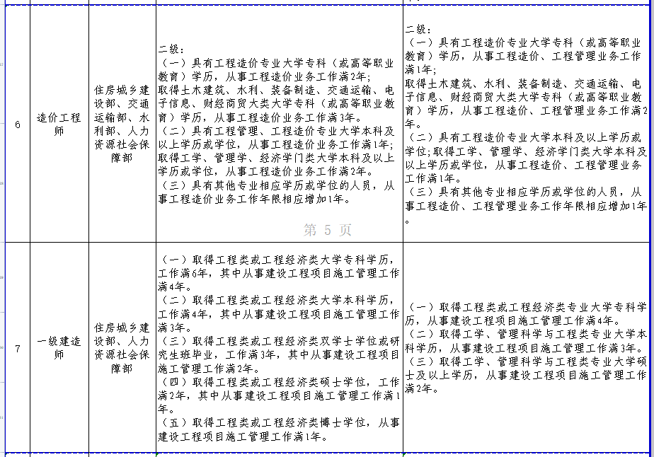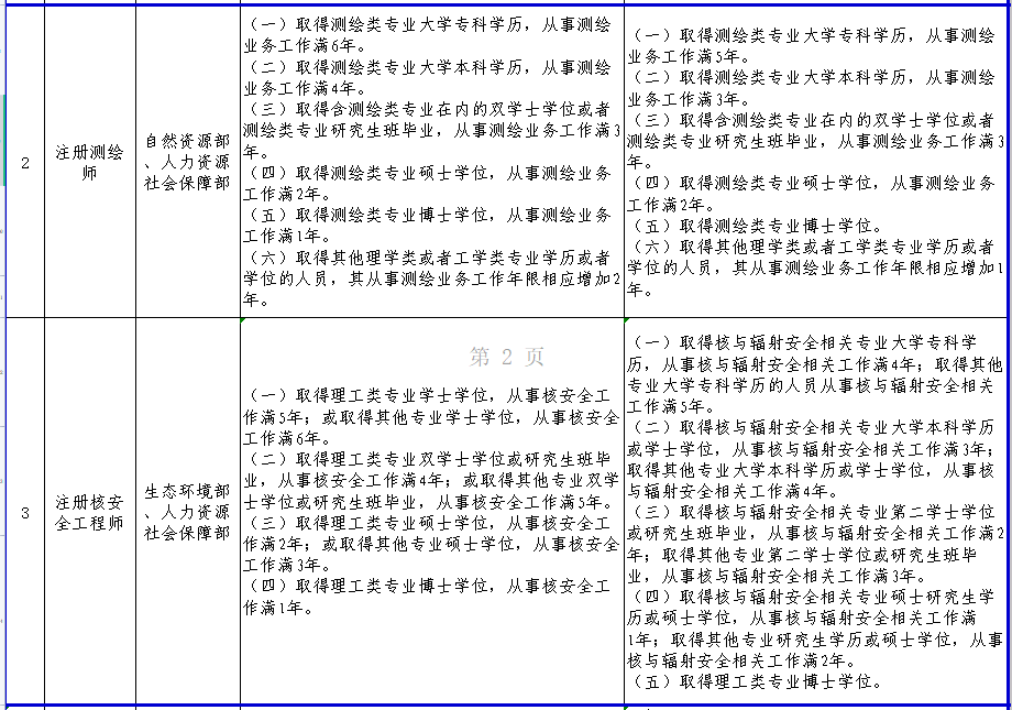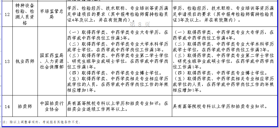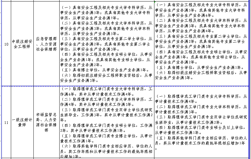 人力资源和社会保障部关于部分准入类职业资格考试工作年限调整方案公示