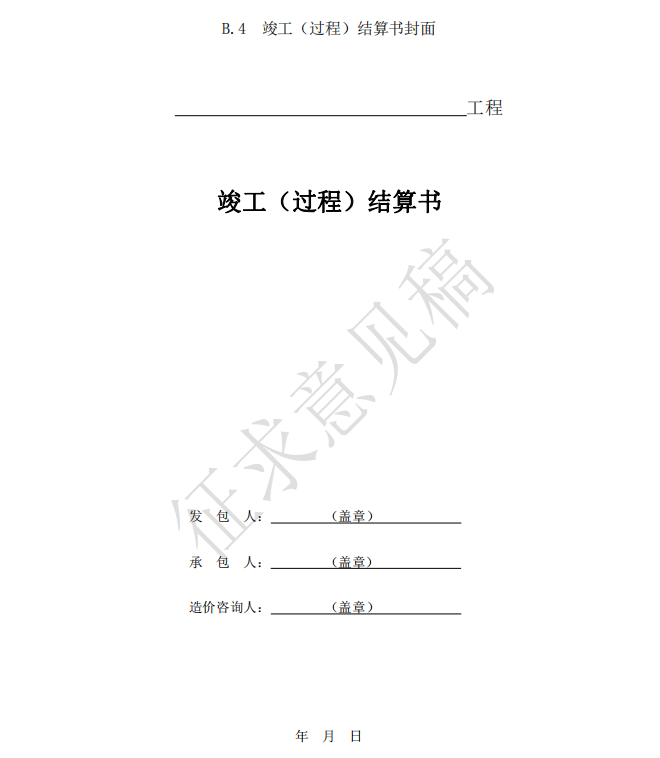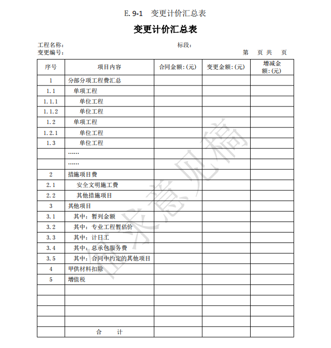 3)竣工(过程)结算使用的表格包括:B.4、C.4、D.3、E.6、E.7、E.7-1、E.7-2、E.7-3、 E.8、E.9-1、E.9-2、E.9-3、E.9-4、E.10、E.11、F.1、F.2、F.3、F.4、F.5、F.6、F.7、G.1、 G.2、G.3、G.4。