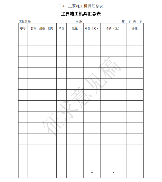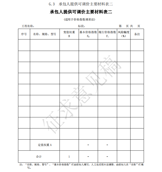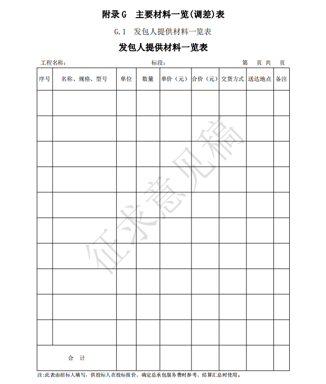 2)投标报价使用的表格包括:B.3、C.3、D.1、D.2、E.1、E.2、E.3、E.4、E.5-1 或 E.5-2、 E.10、G.1、G.2、G.3、G.4;