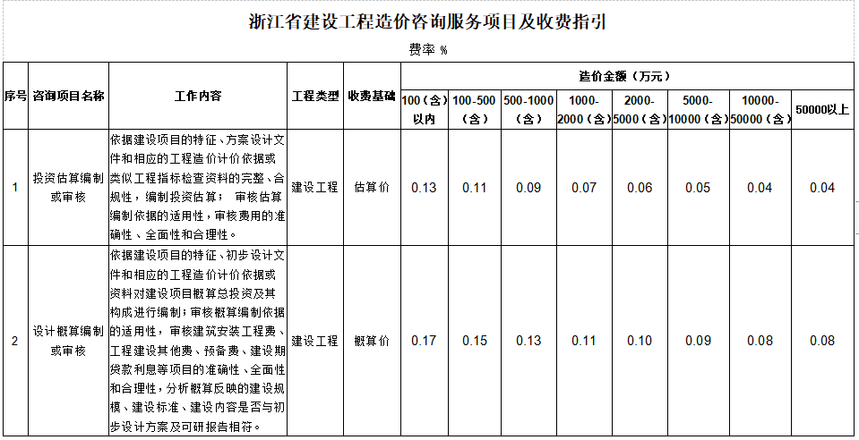附件:浙江省建设工程造价咨询服务项目及收费指引